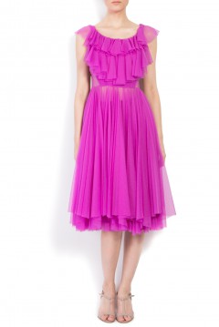 Rochie din matase cu broderie, intr-o nuanta deosebita: auriu-cupru. Este o alegere perfecta pentru un cocktail sau pentru un eveniment special, de zi. Arata spectaculos in combinatie cu o pereche de sandale cu toc inalt si platforma.