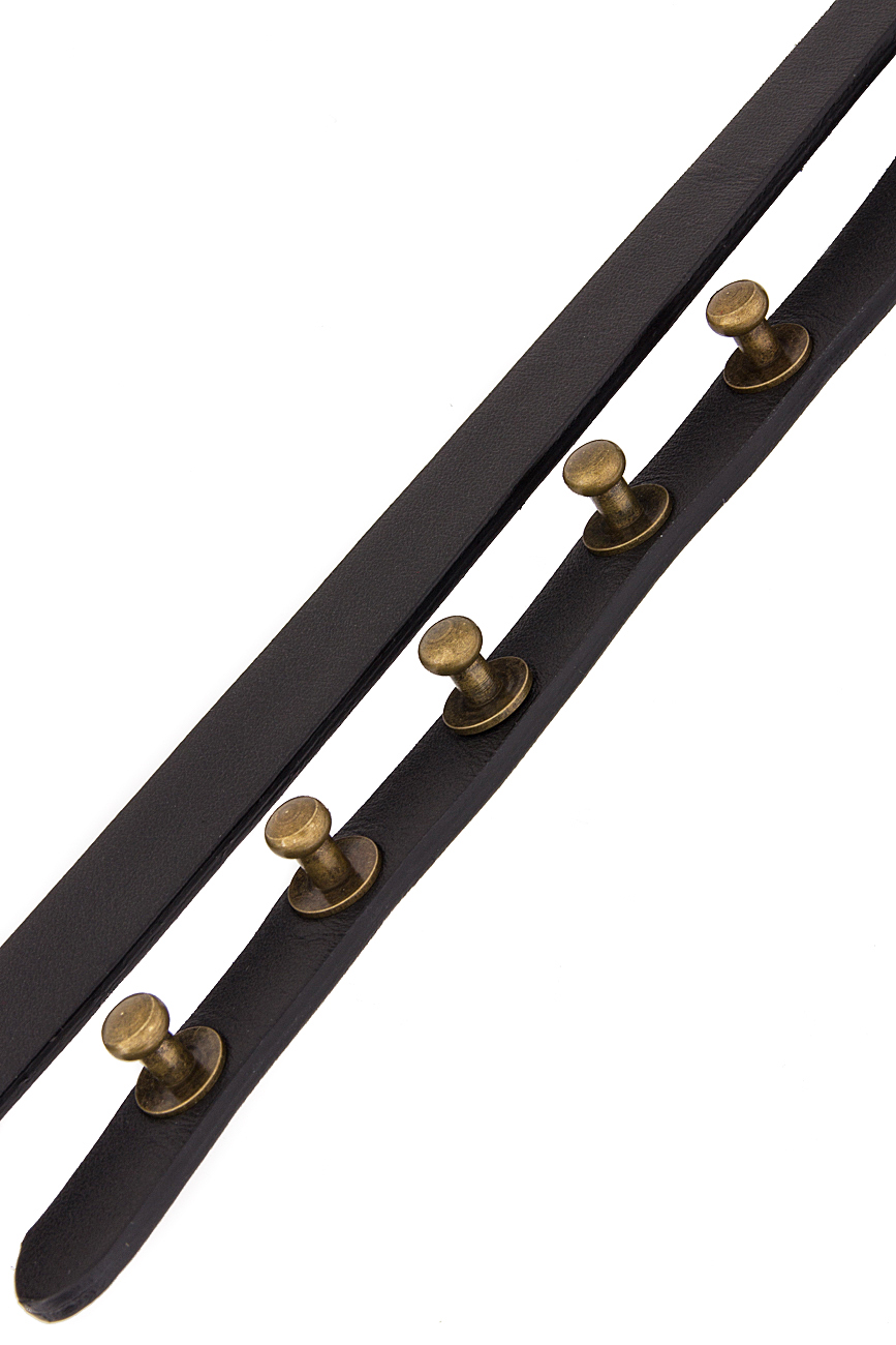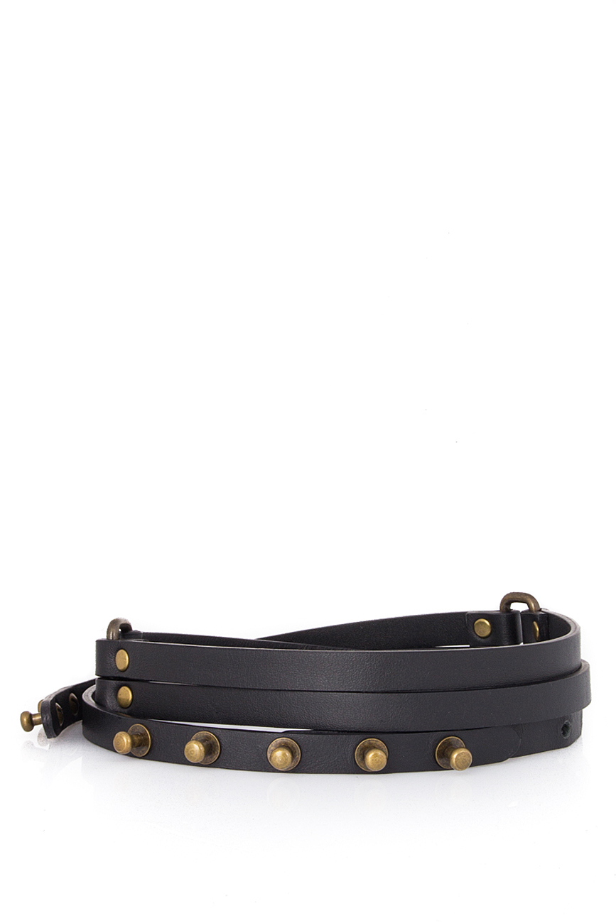 Curea dublă, din piele neagră. Închiderea se face prin capse de culoarea bronzului.